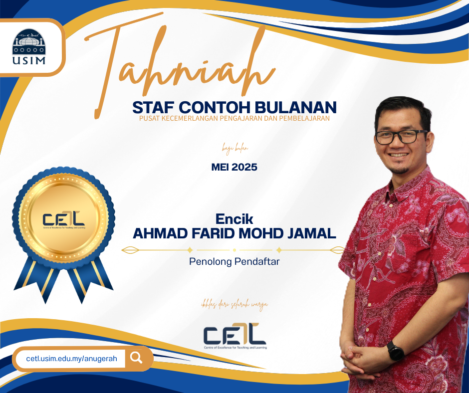 Ahmad Farid bin Mohd Jamal, Penolong Pendaftar CETL telah dianugerahkan [...]
