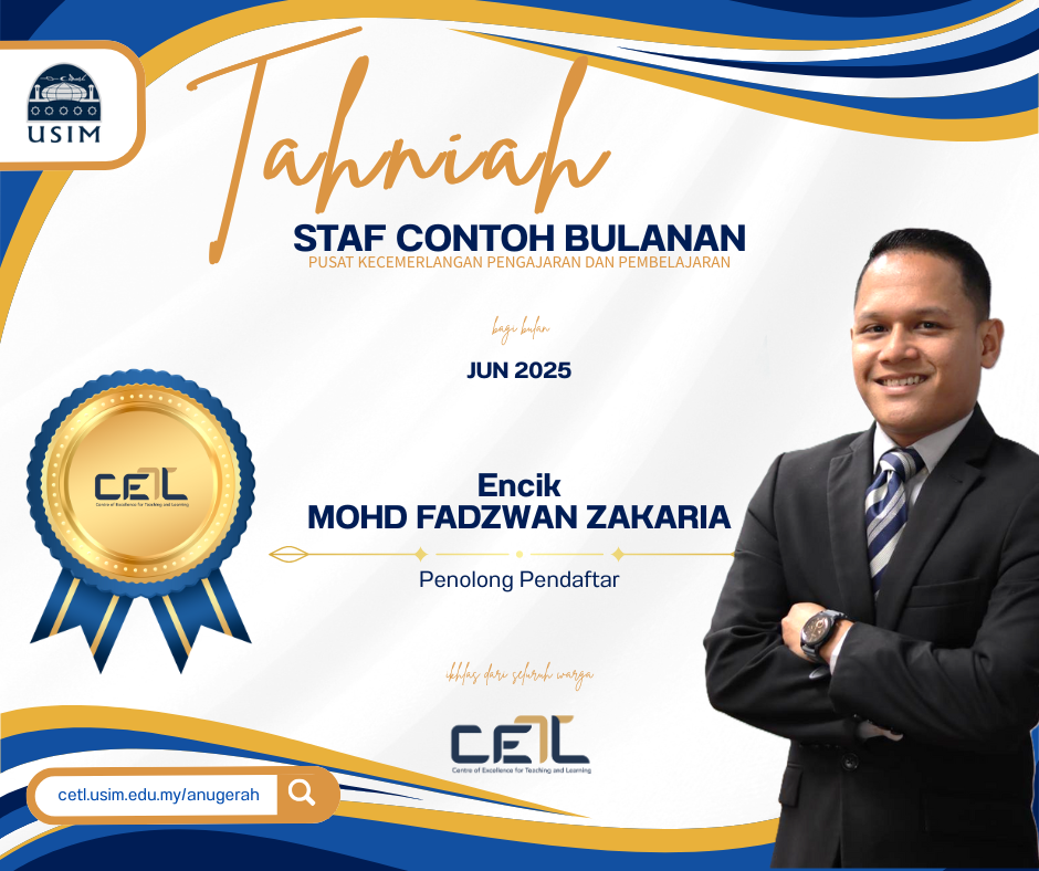 Mohd Fadzwan bin Zakaria, Penolong Pendaftar CETL telah dianugerahkan Staf [...]
